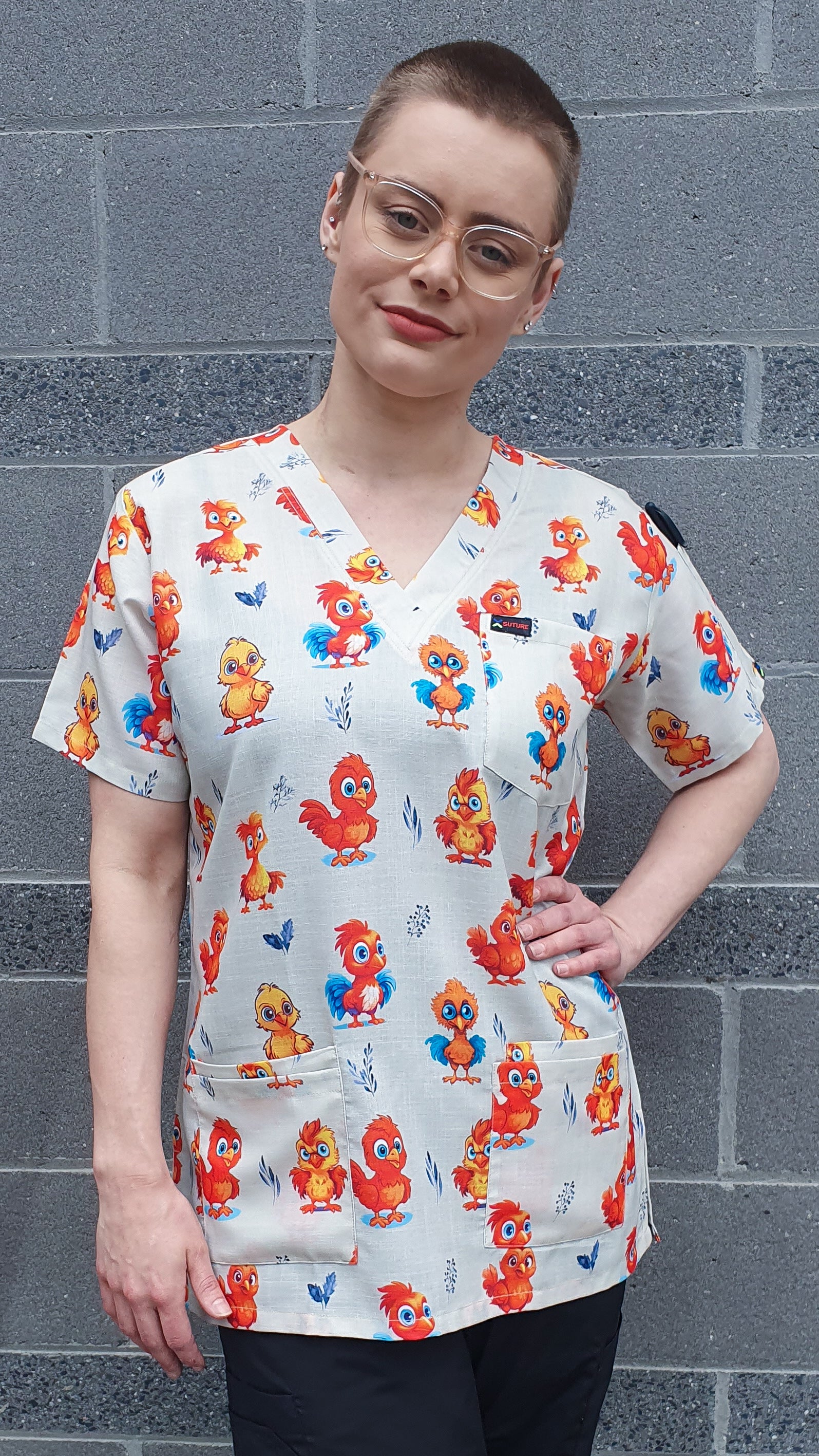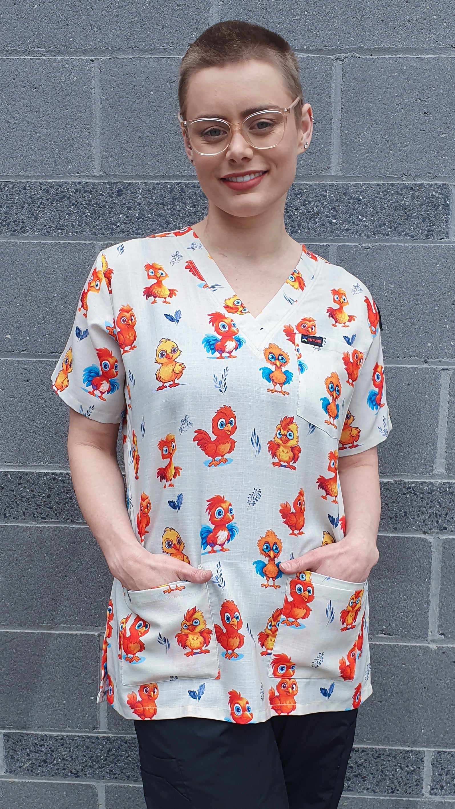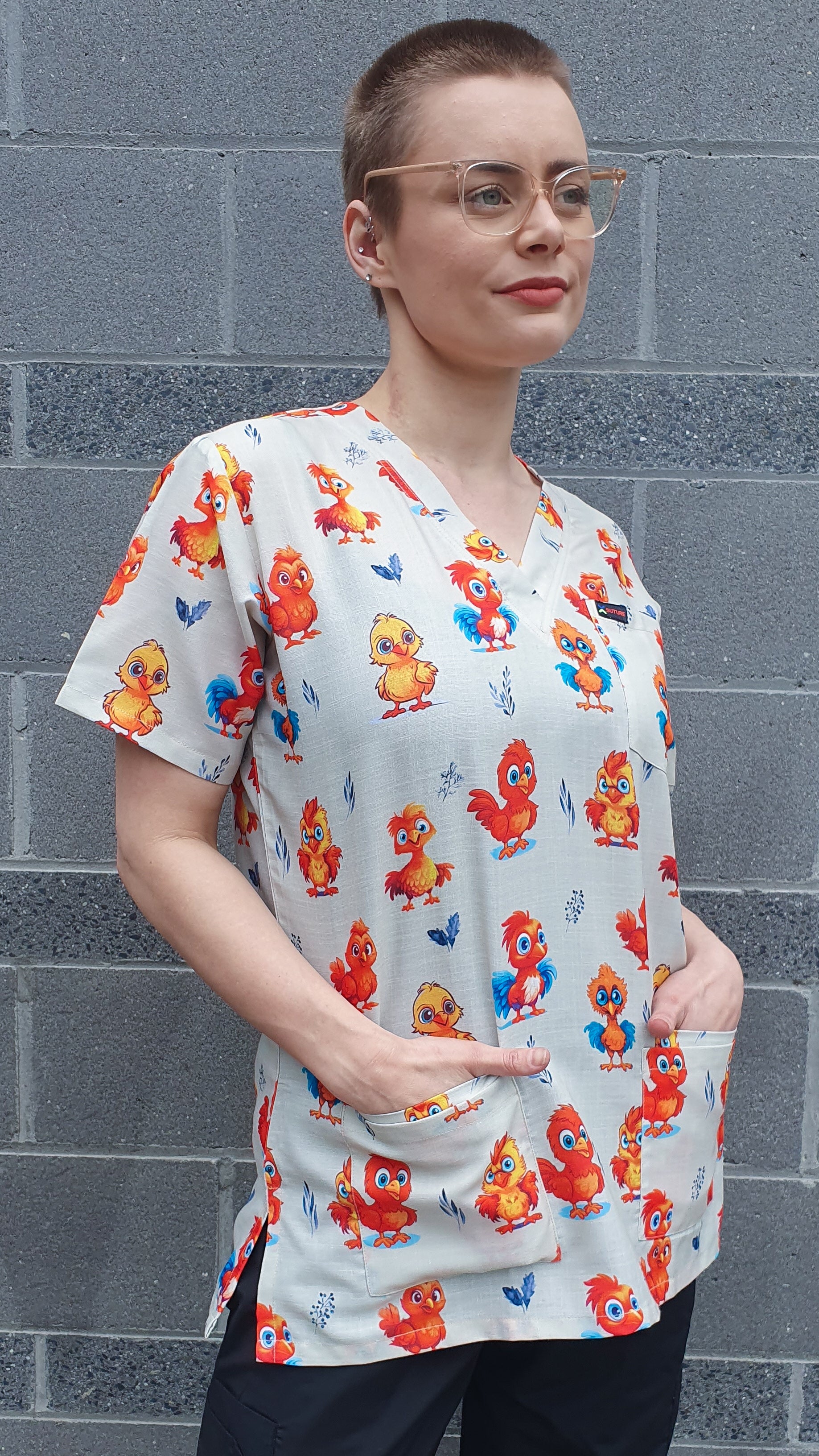 Cute Chicken Chick Printed Fun Scrub Top Australia