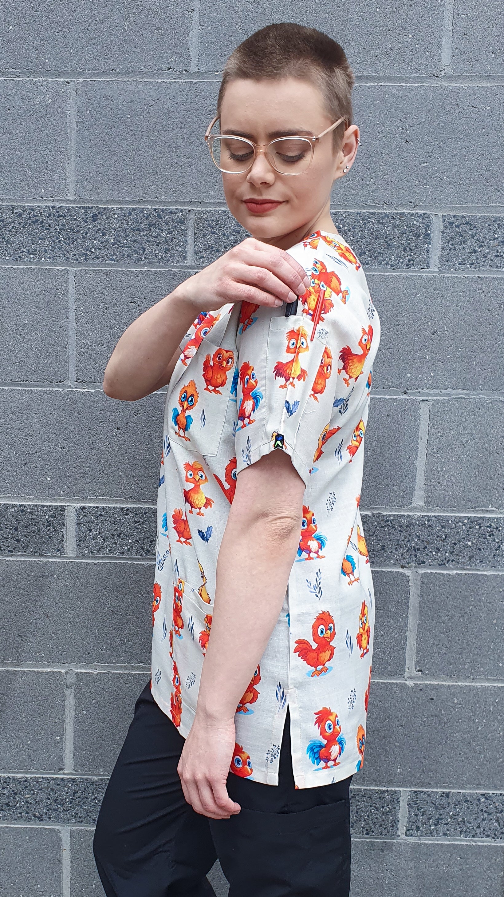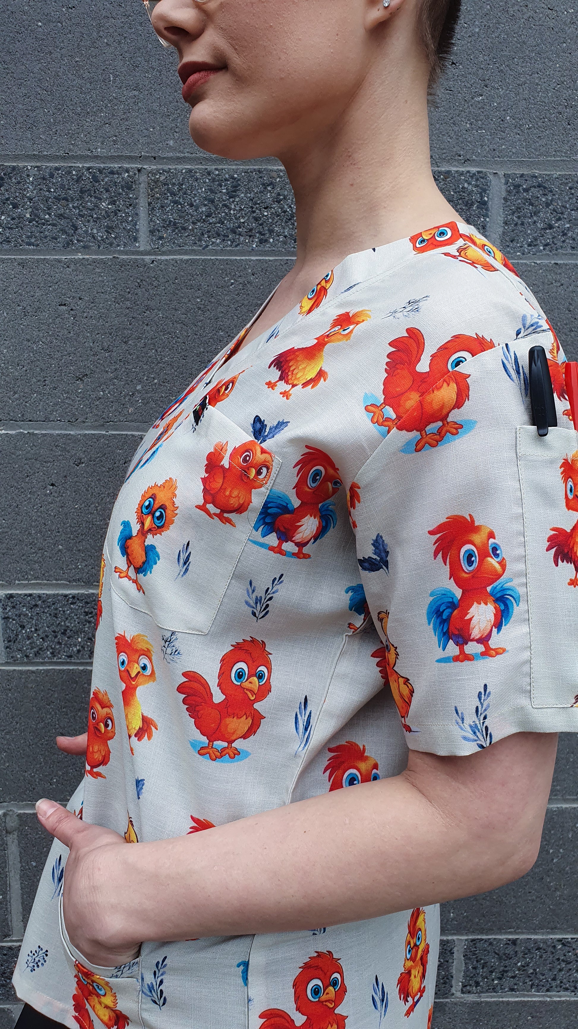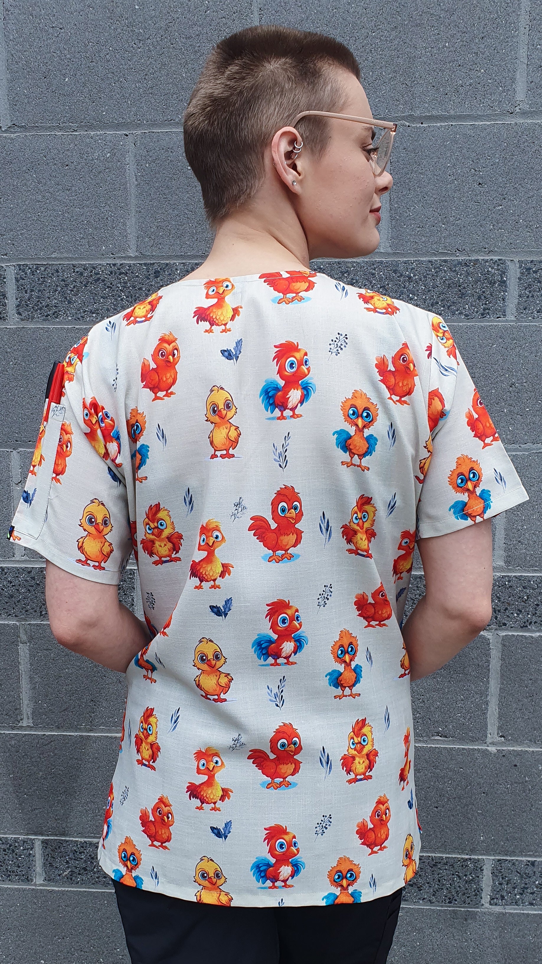 Cute Chicken Chick Printed Fun Scrub Top Australia