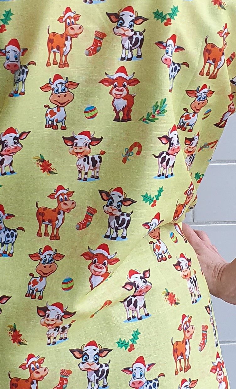 A perfect Christmas scrub top to uplift the spirit and joy of Christmas , featuring cute Christmas Cows.