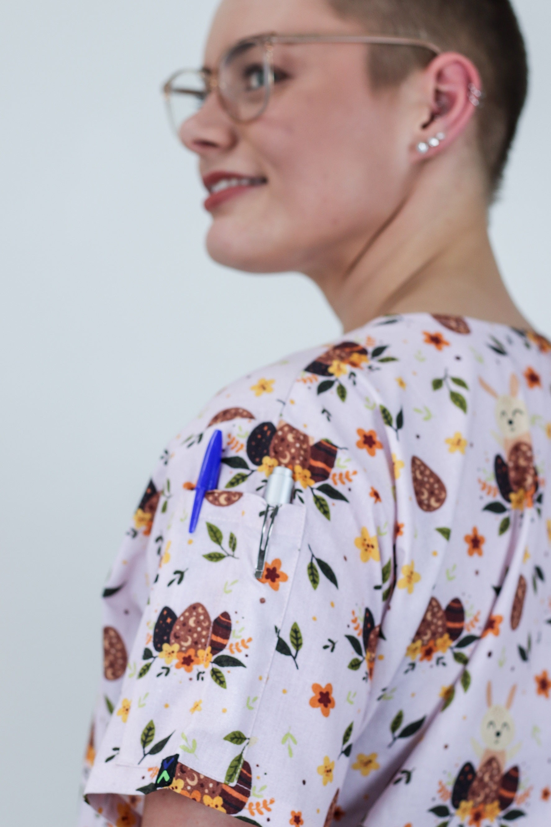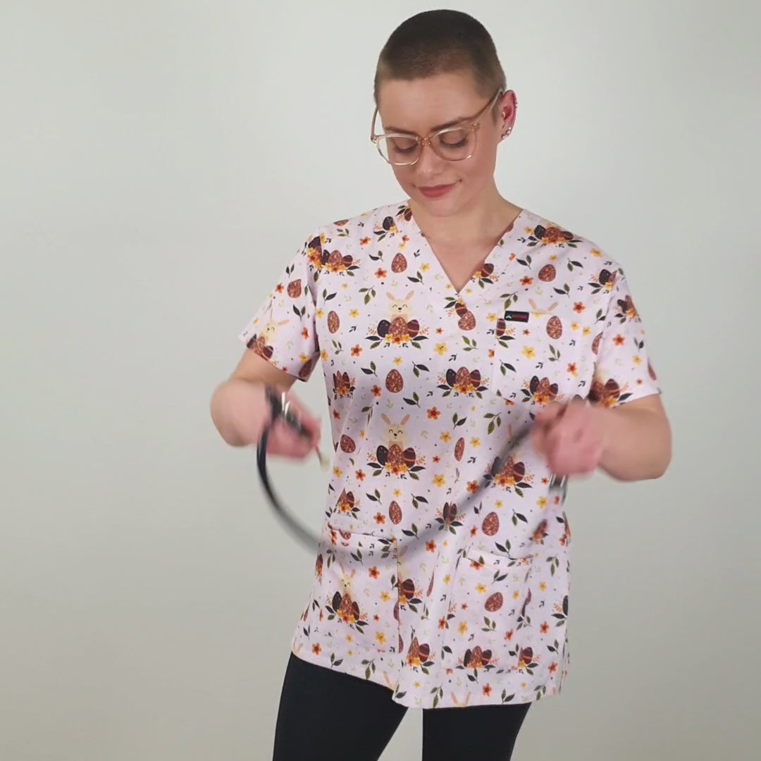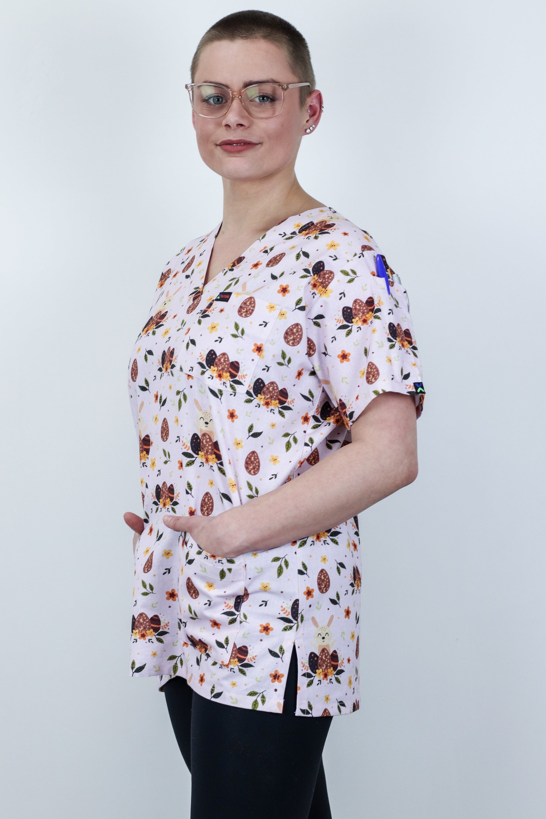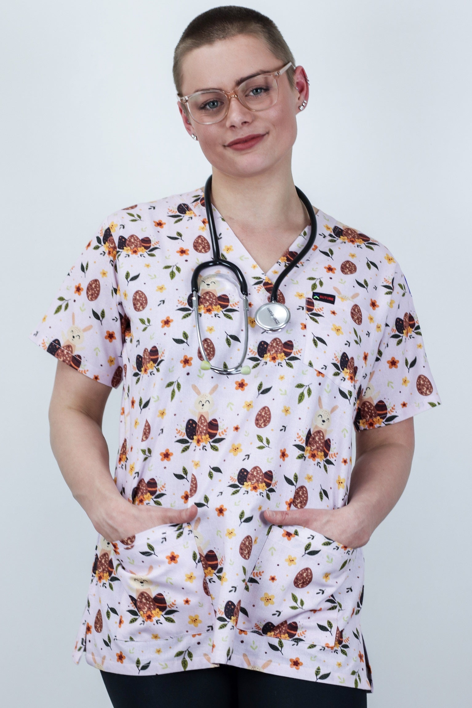 Easter Bunny Easter Egg Printed 100% Cotton Medical Fun Scrub Top Australia Nurses uniform