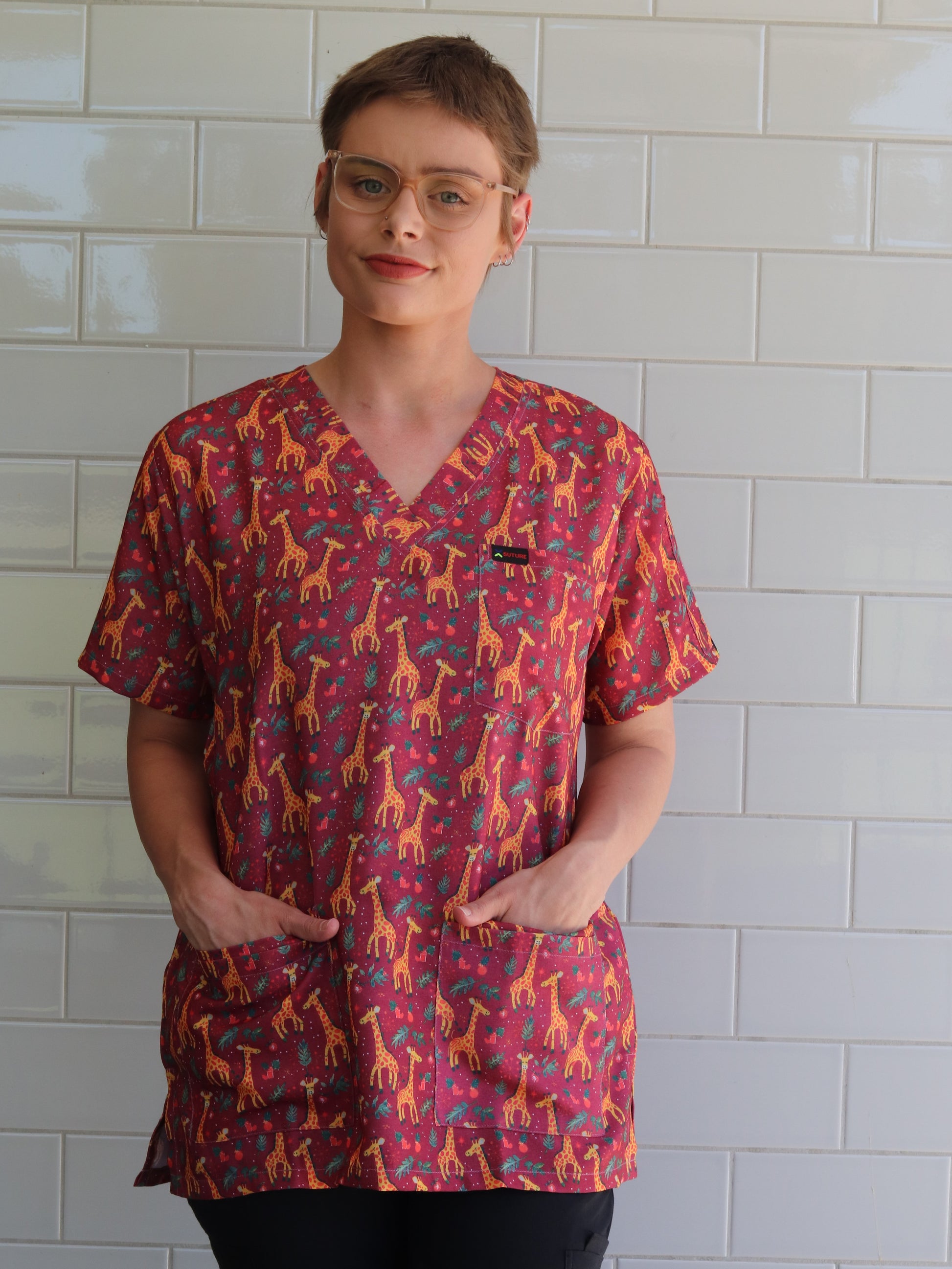 Giraffe Christmas Printed Fun Scrub Top Australia