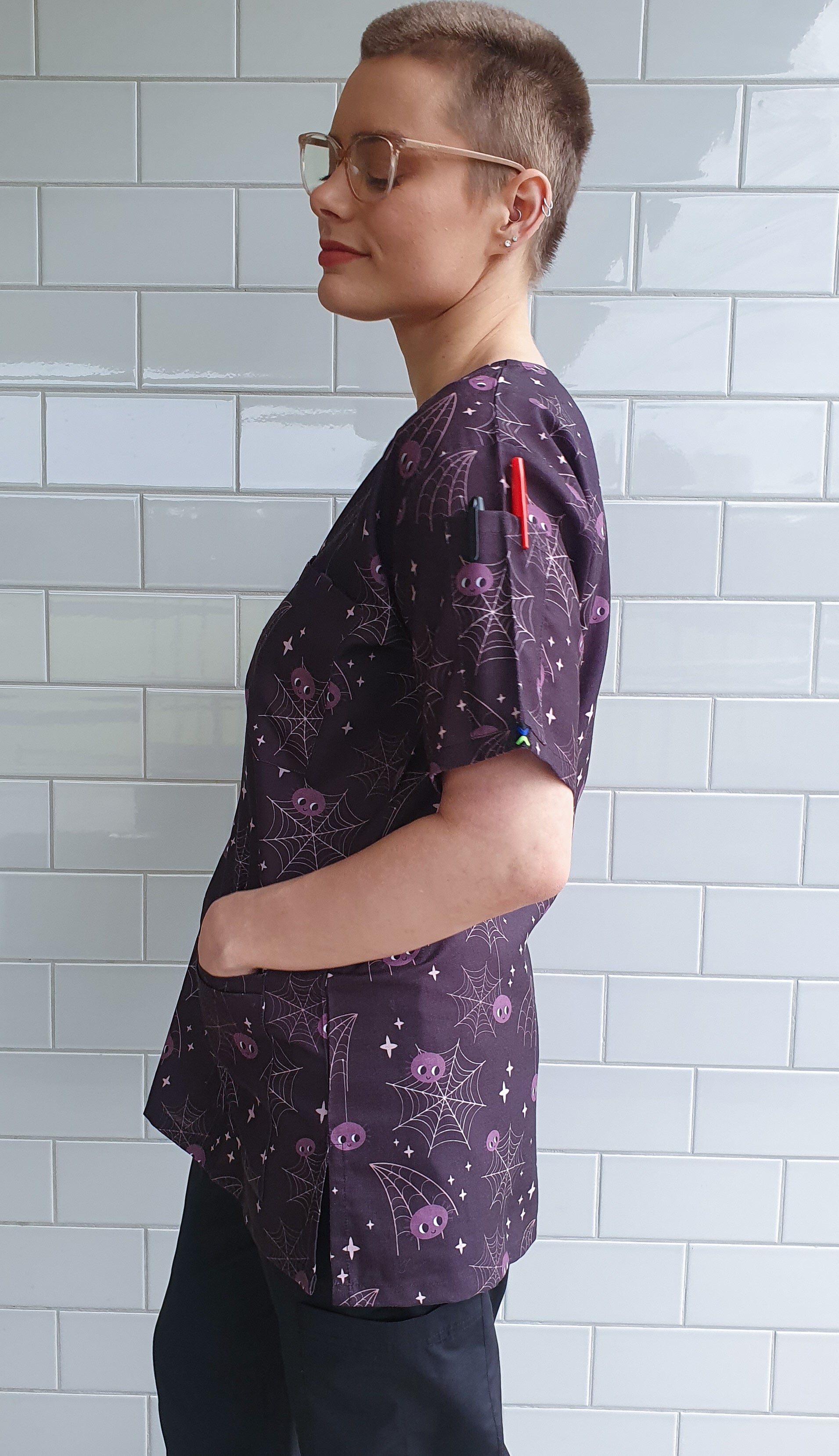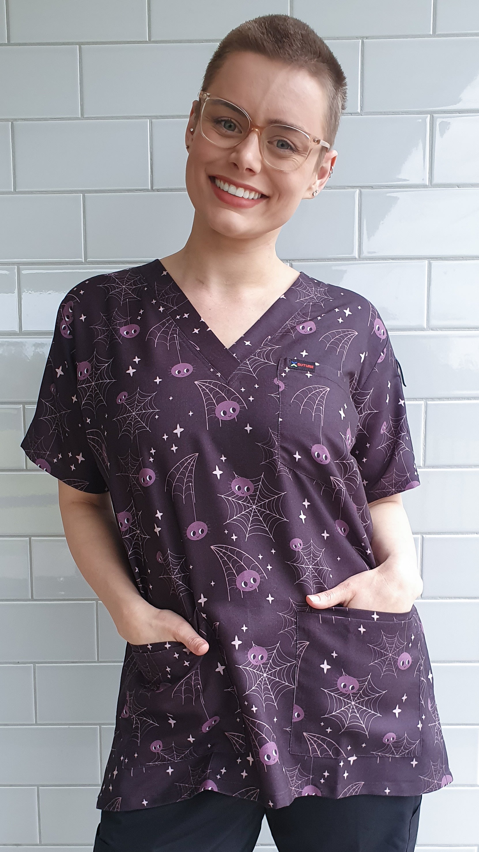 A perfect Halloween scrub top to uplift the spirit and joy of Halloween.