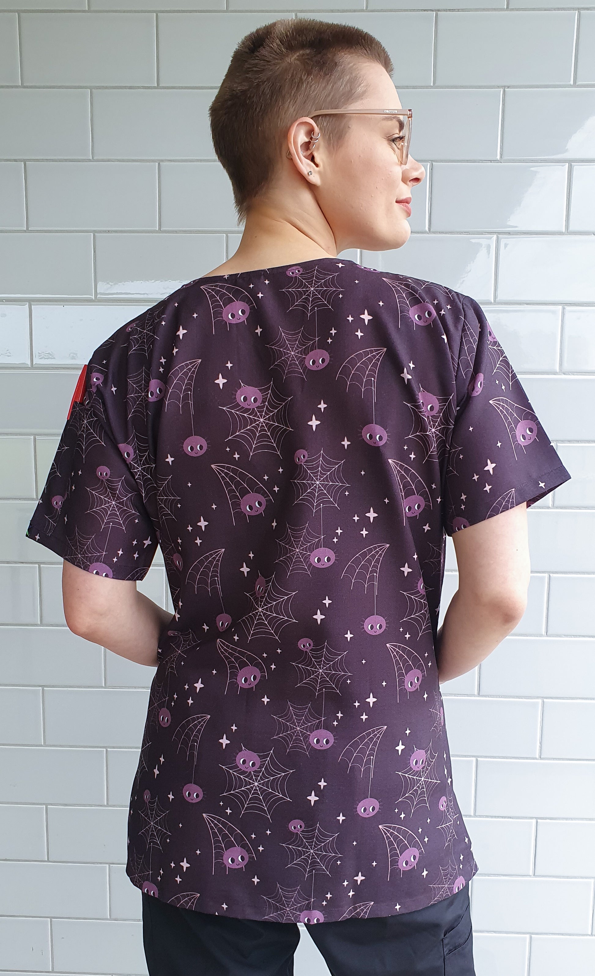 Halloween Printed Scrub Top Spider Web print For Nursing Medical