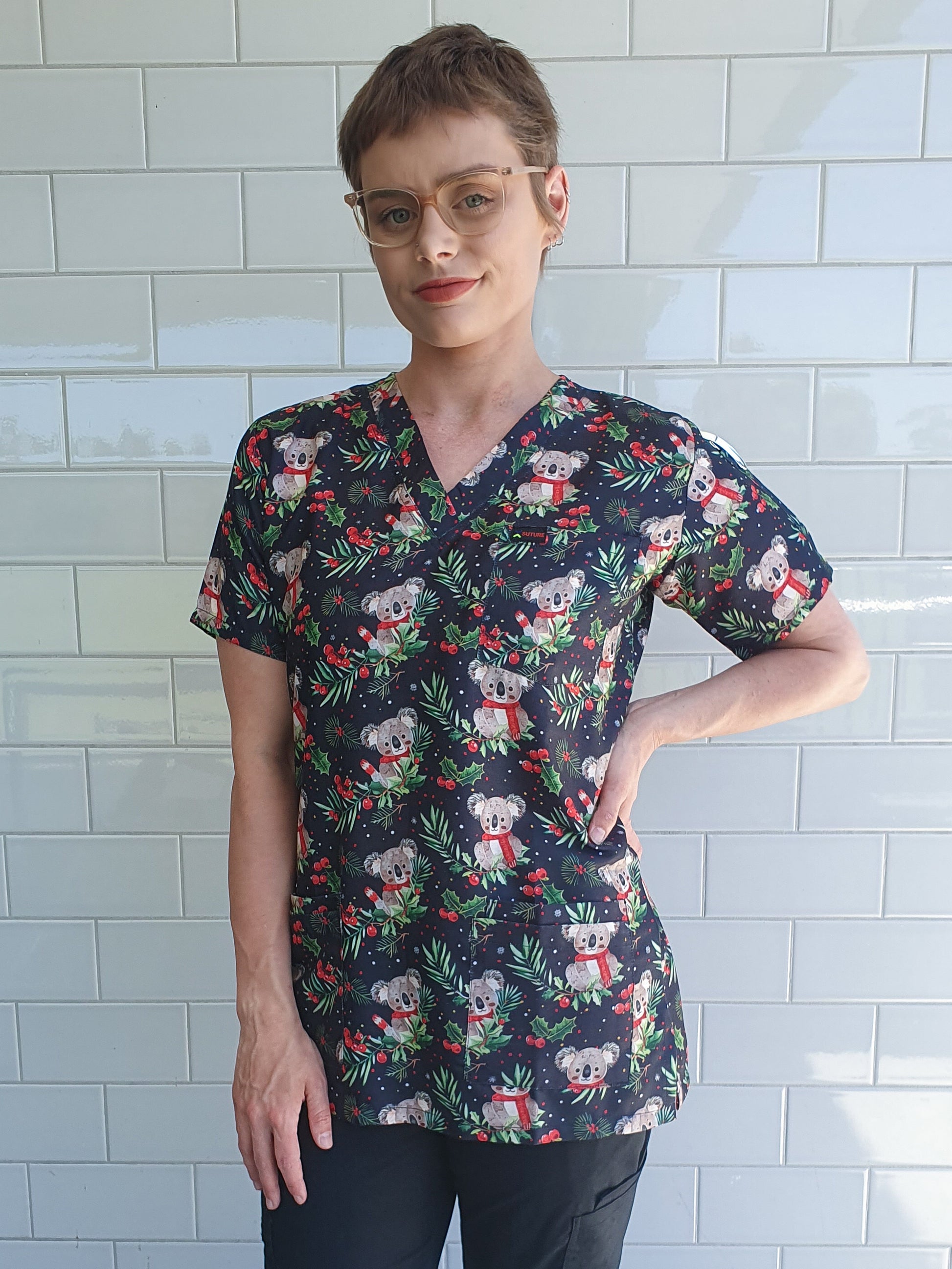 Koala Berry Christmas Printed Fun Scrub Top Australia