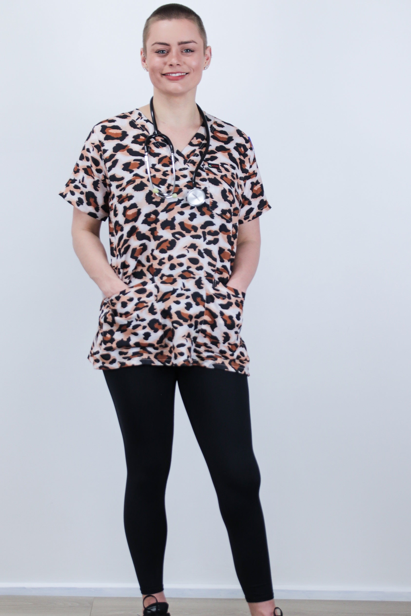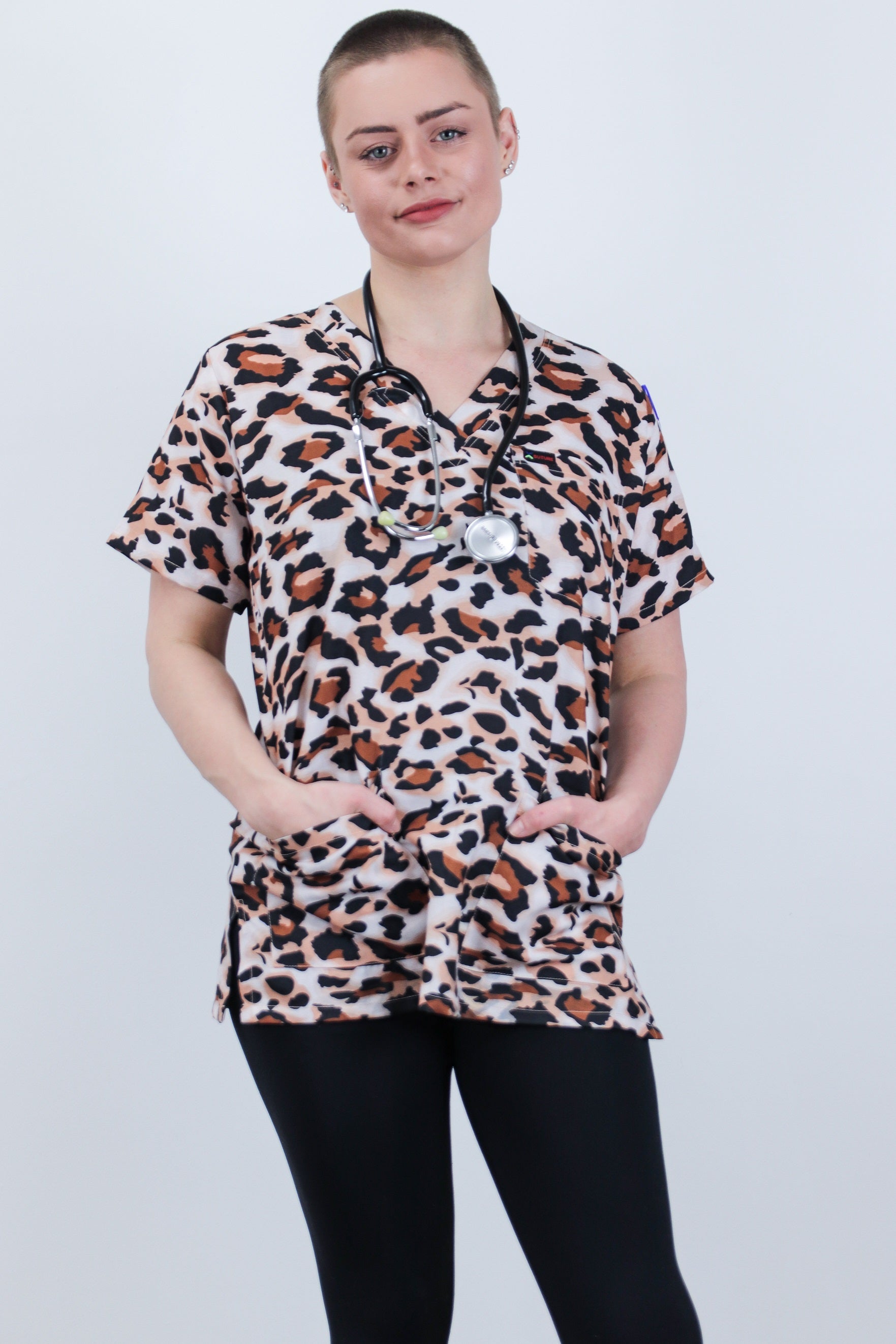 Leopard Printed Scrub Top Australia Nurses Patterened Cheap Scrub Top