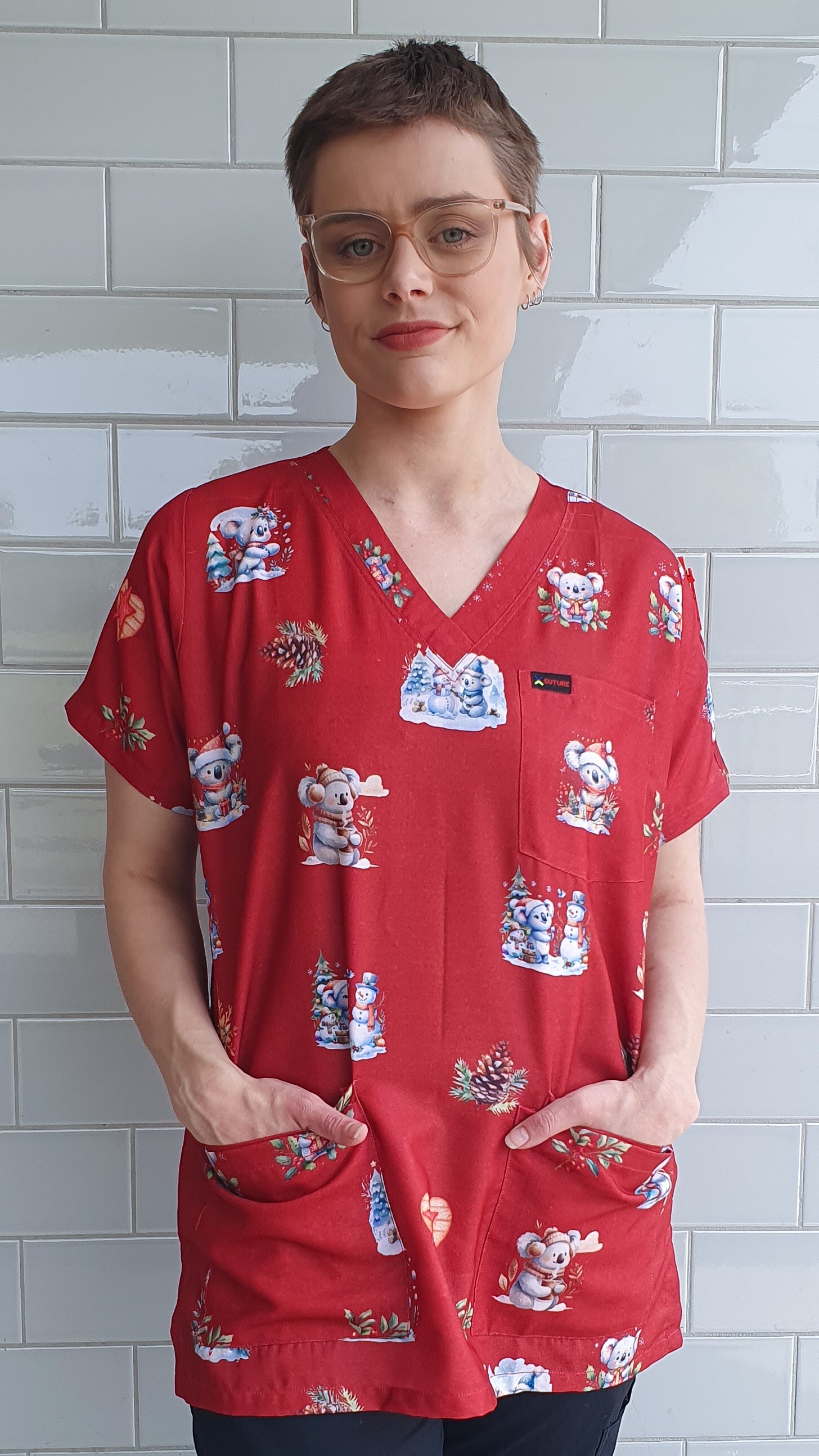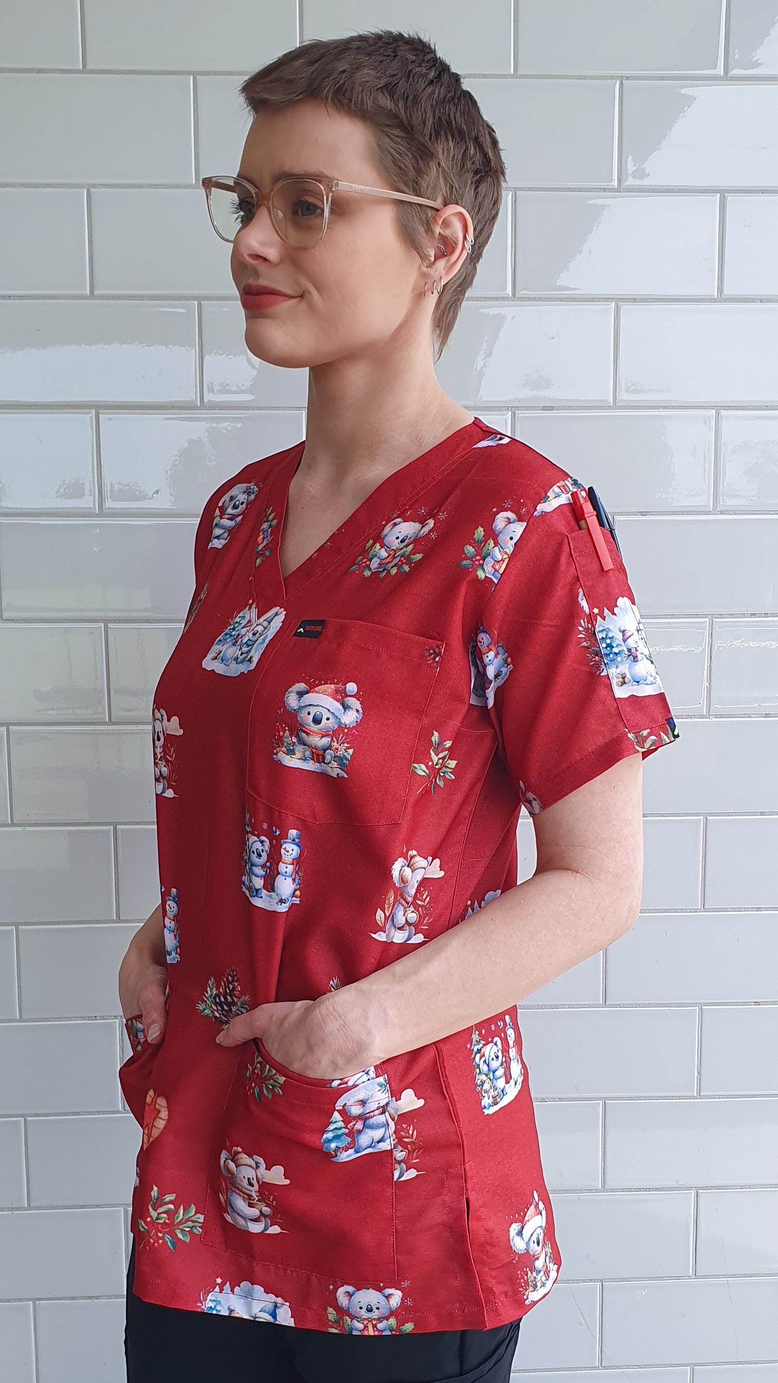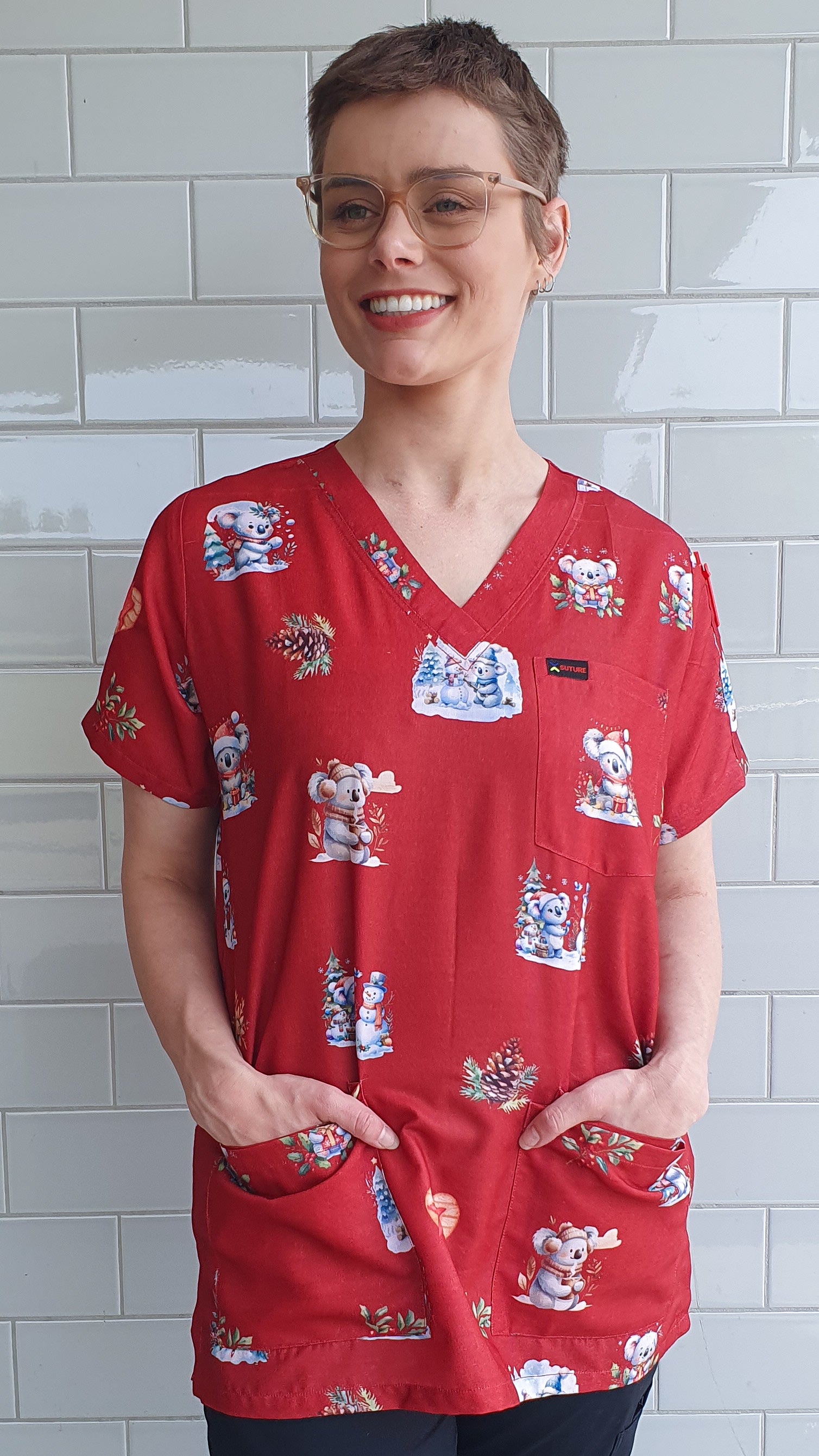 Red Koala Christmas Printed Fun Scrub Top Australia