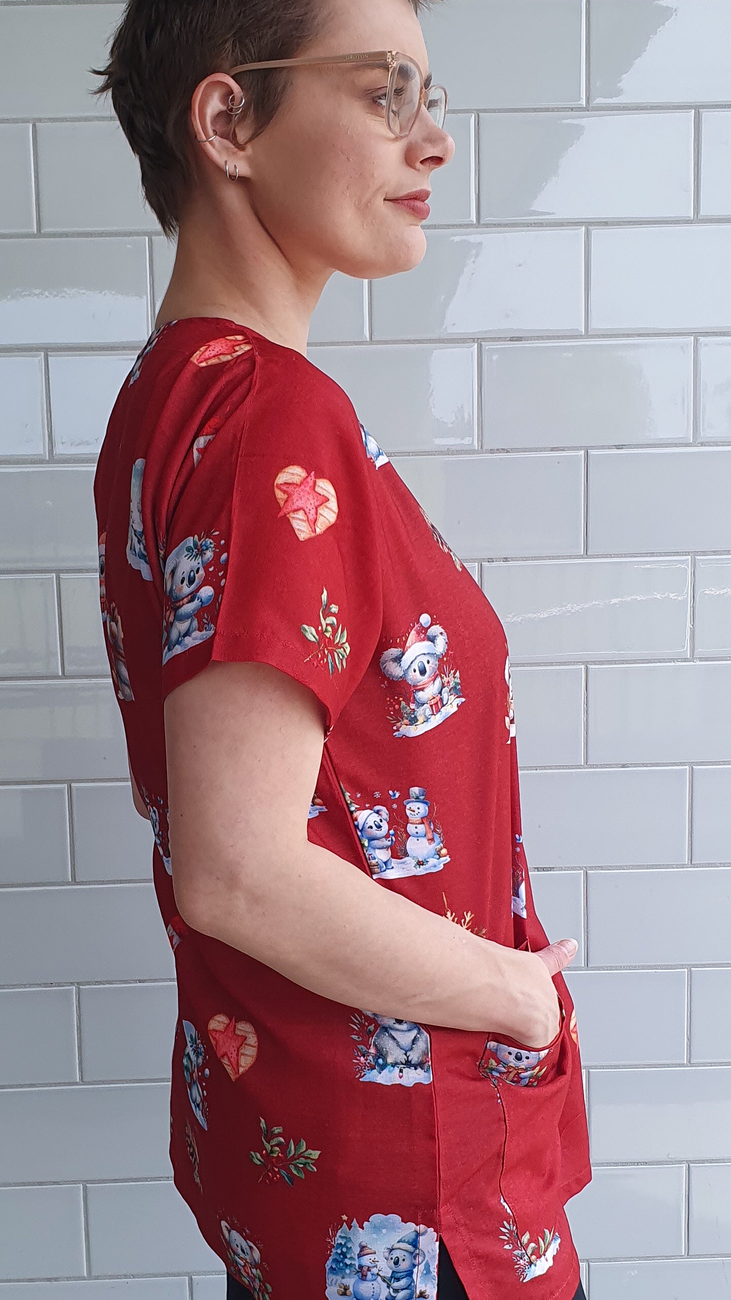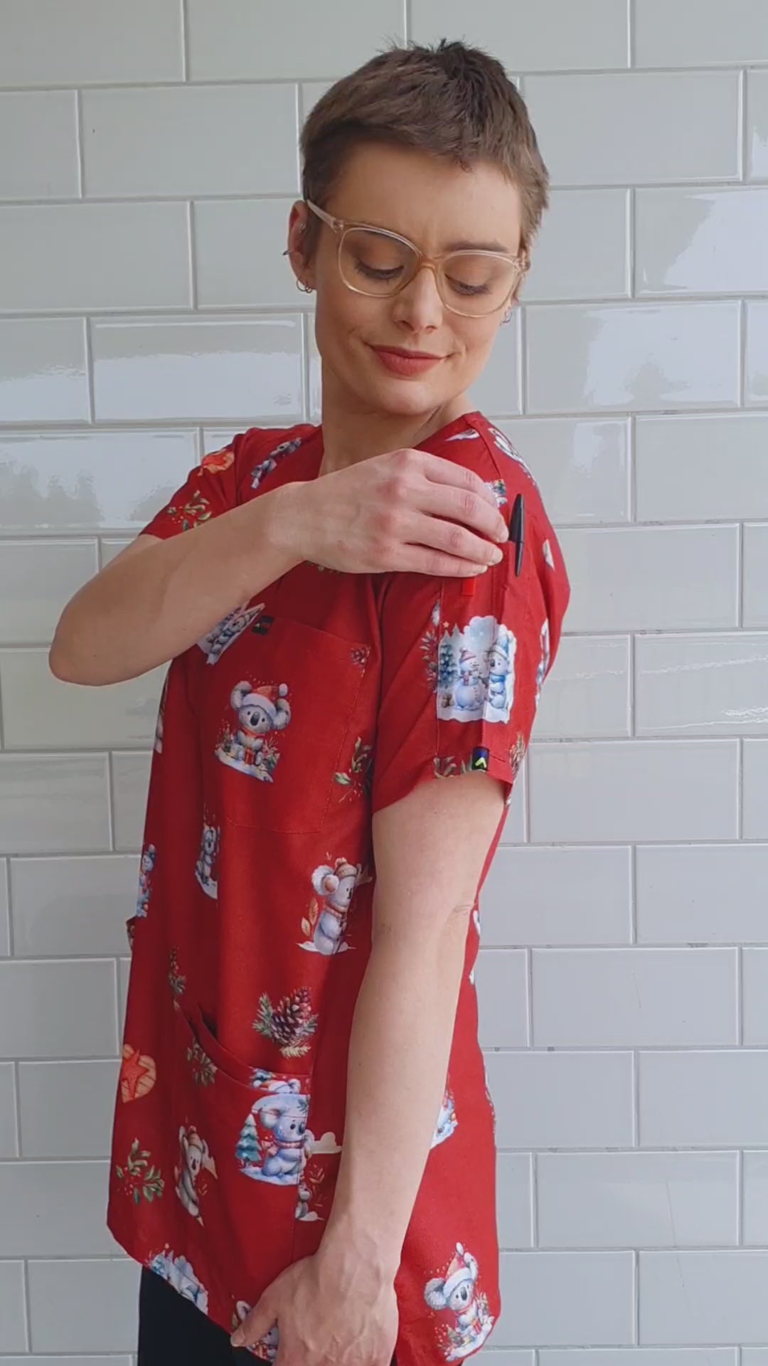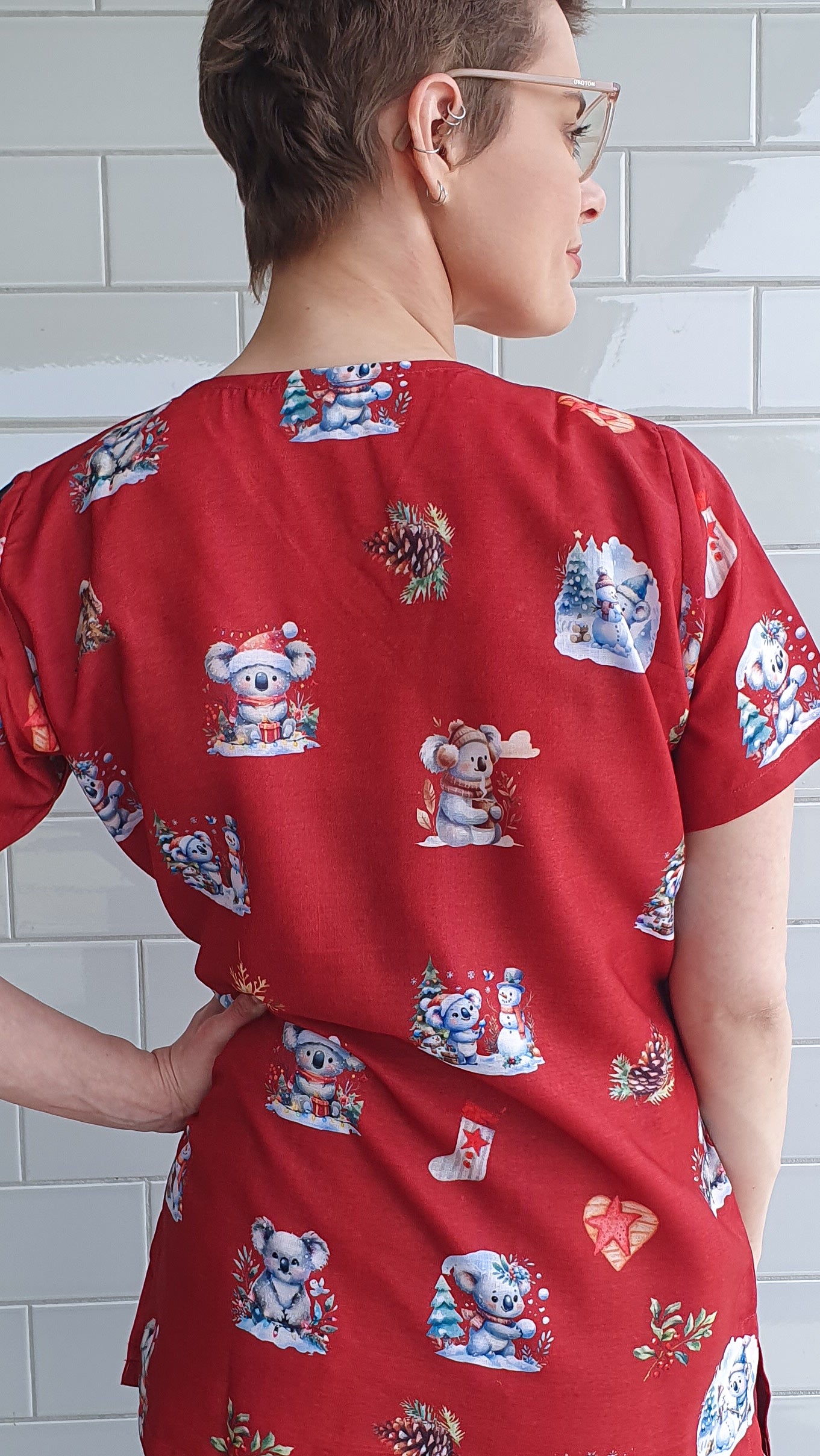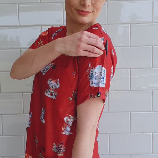 Red Koala Christmas Printed Fun Scrub Top Australia