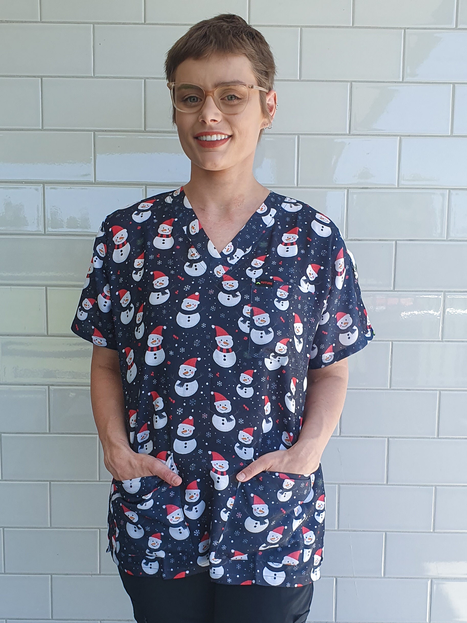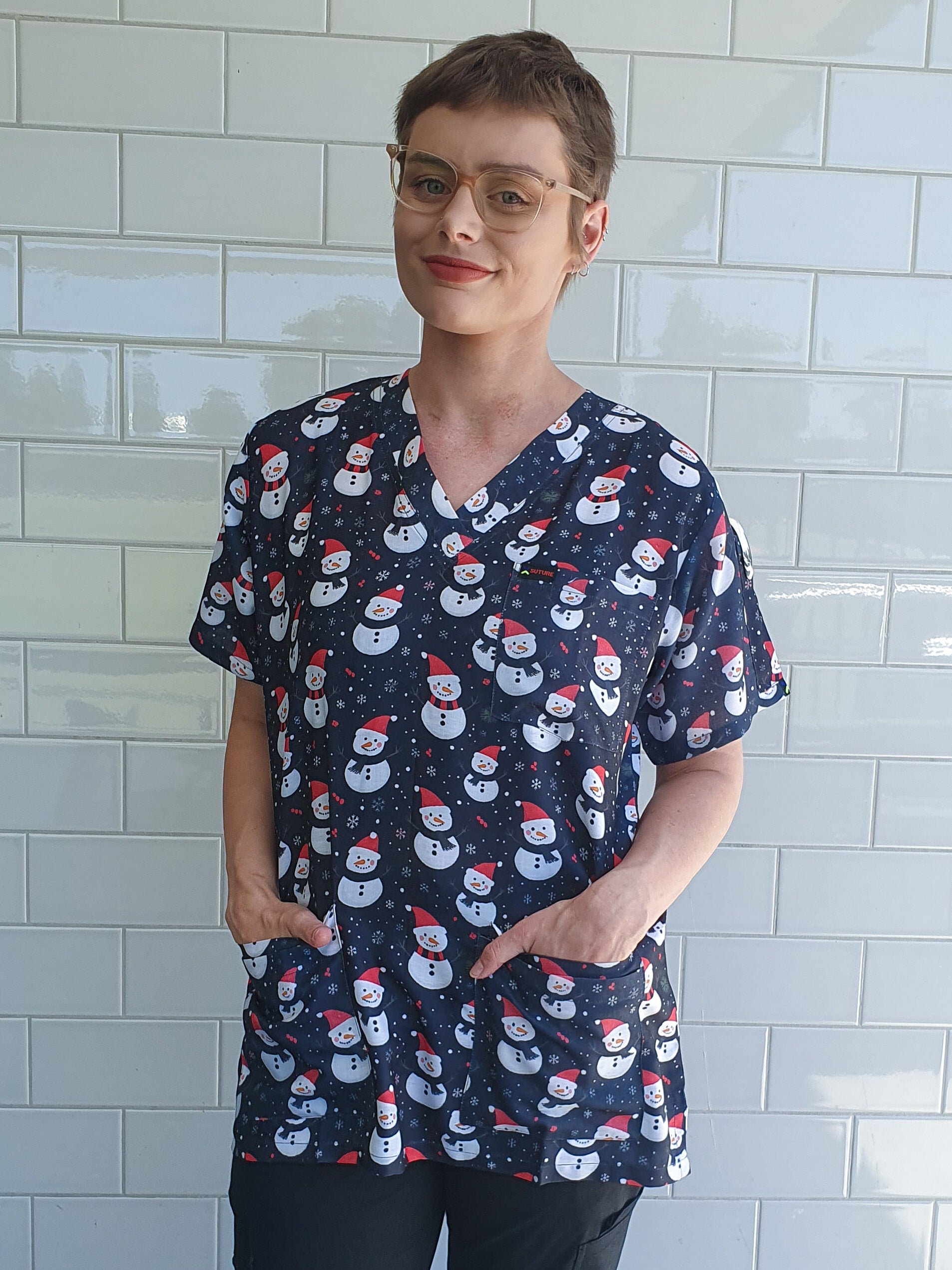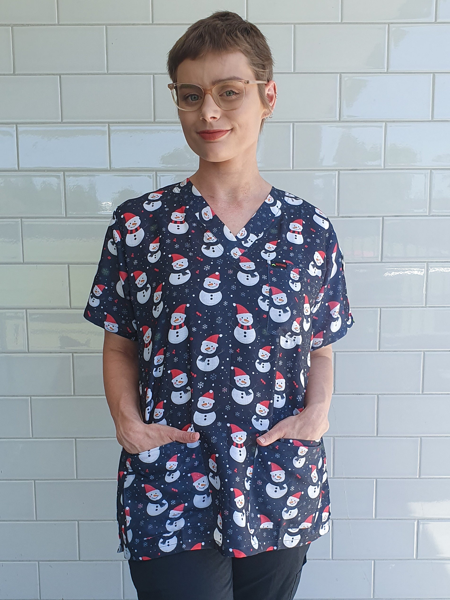 Snowman Black Christmas Printed Fun Scrub Top Australia
