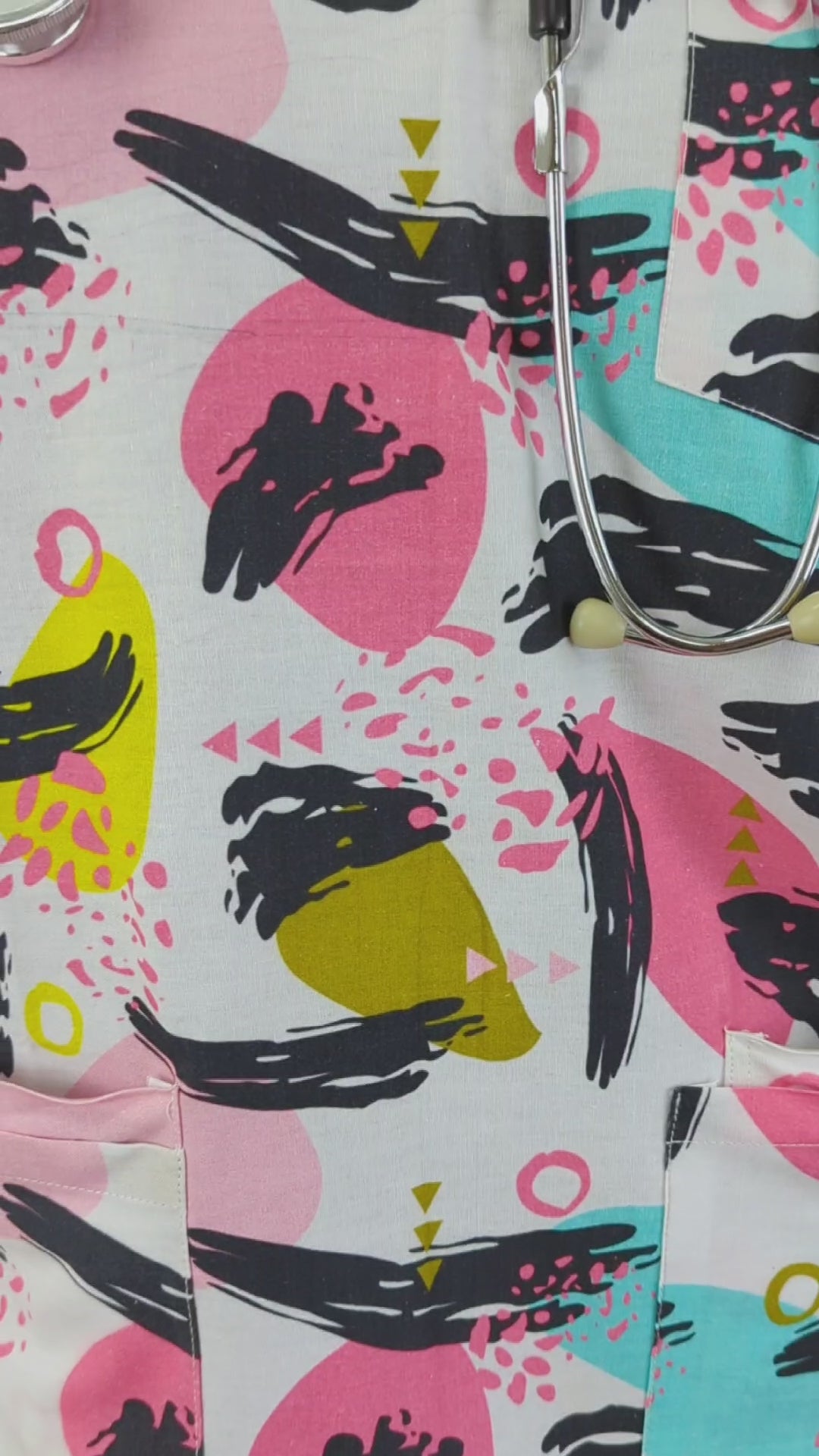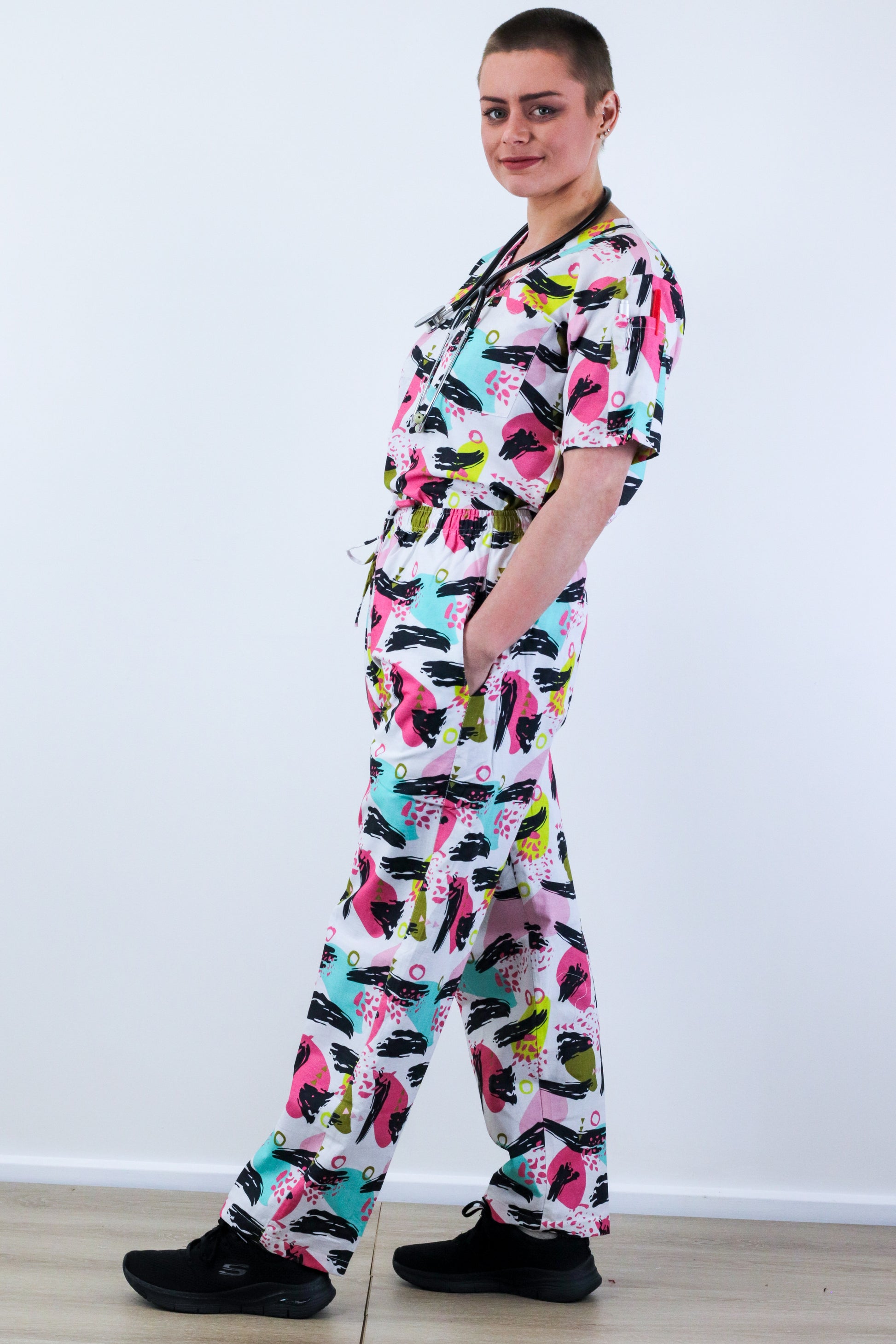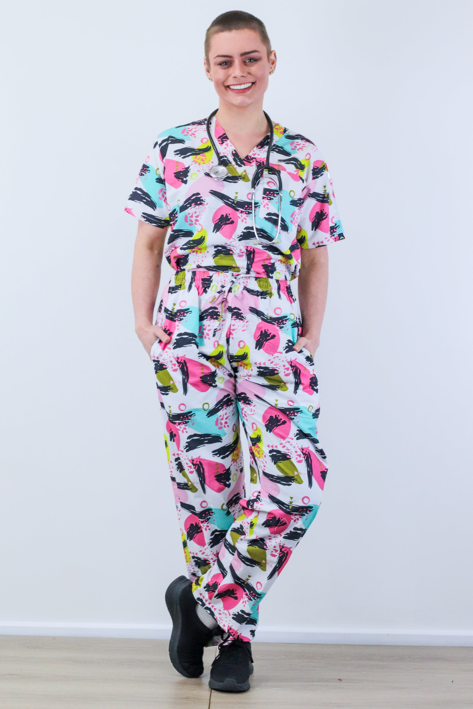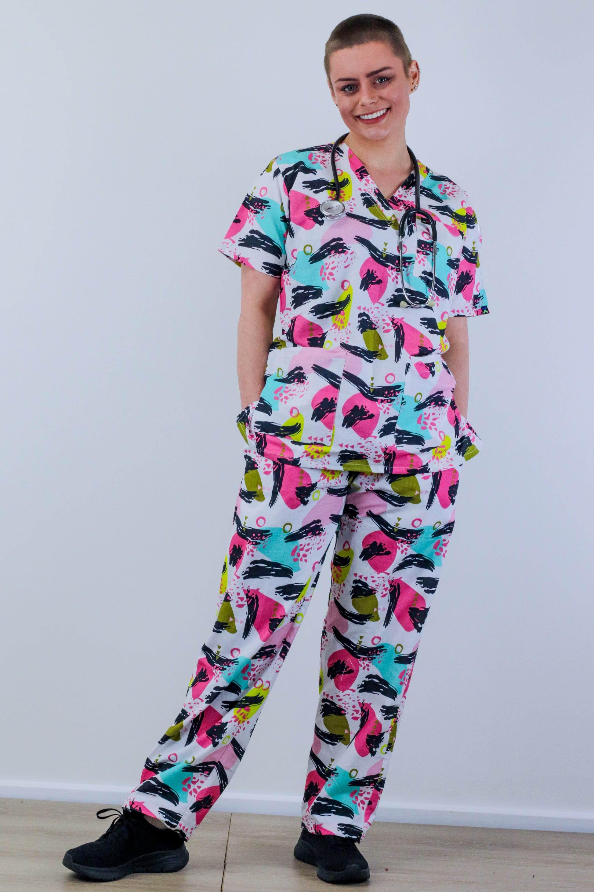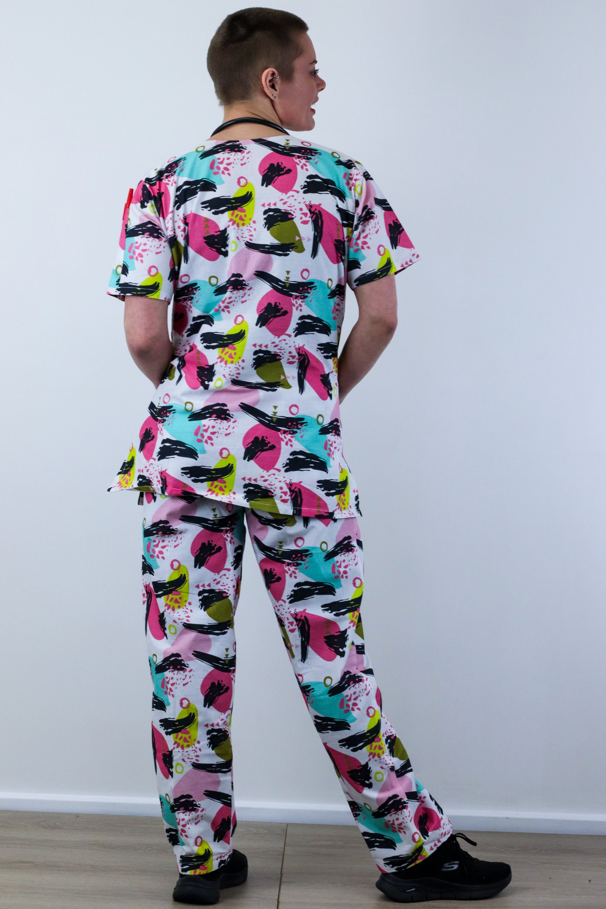 Colourful Abstract Wave Art printed Scrub Set . Top and Pants set .